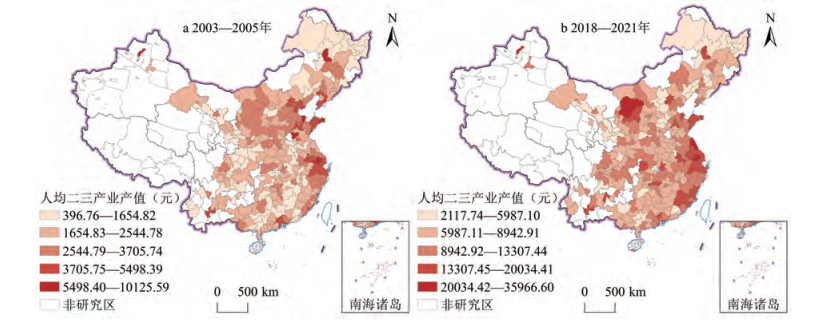 Moran's Index of per Capita Secondary and TertiaryProduction in Chinese Cities from 2003 to 2021